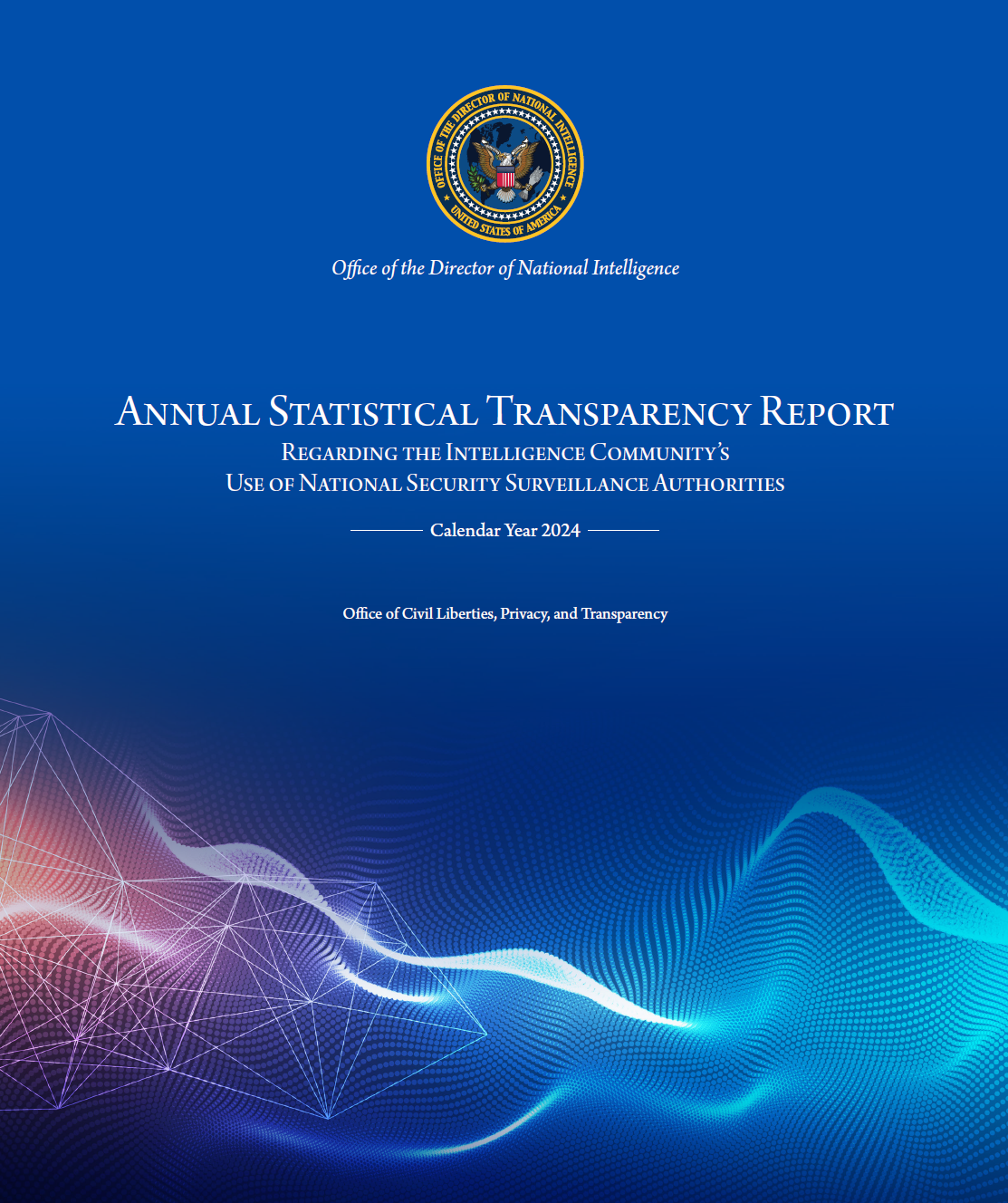The Office of the Director of National Intelligence (ODNI) today released the Annual Statistical Transparency Report (ASTR) Regarding the Intelligence Community’s (IC) Use of National Security Surveillance Authorities for Calendar Year 2024. The report, published every year since 2014, provides the public with statistics and context regarding the government’s use of Foreign Intelligence Surveillance Act authorities, National Security Letters, and other national security authorities.