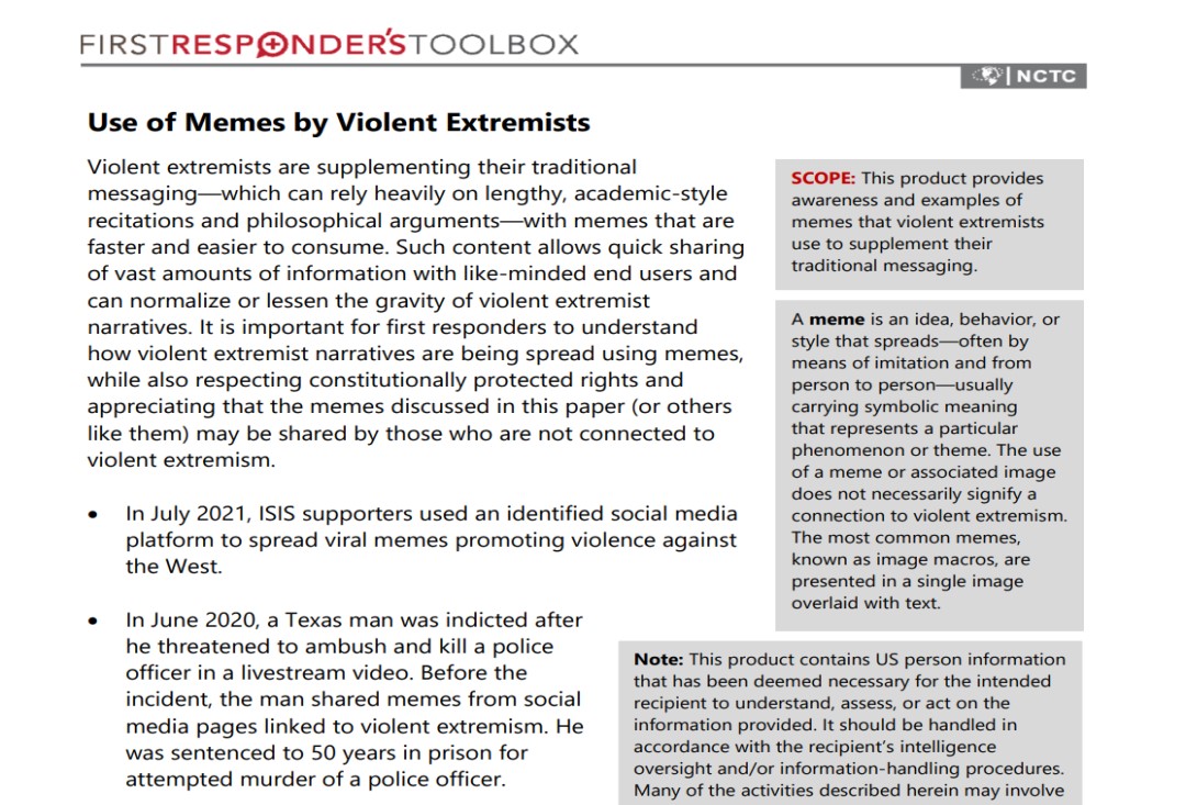 Provides awareness and examples of memes that violent extremists use to supplement their traditional messaging.
