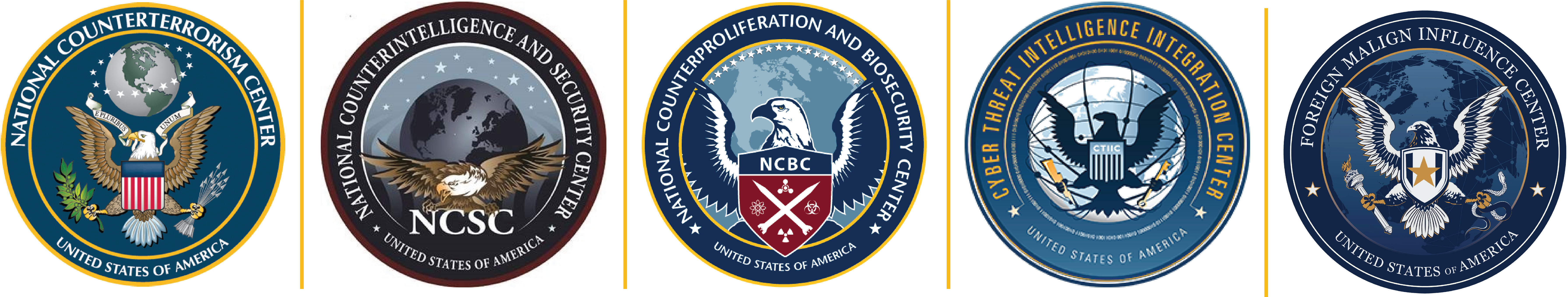 The Intelligence Community maintains several national centers that integrate and coordinate the activities of the entire IC, or in some cases, broader U.S. Government activities. At ODNI these include the National Counterterrorism Center (NCTC), the National Counterintelligence and Security Center (NCSC), the National Counterproliferation and Biosecurity Center (NCBC), the Cyber Threat Intelligence Integration Center (CTIIC) and the Foreign Malign Influence Center (FMIC).