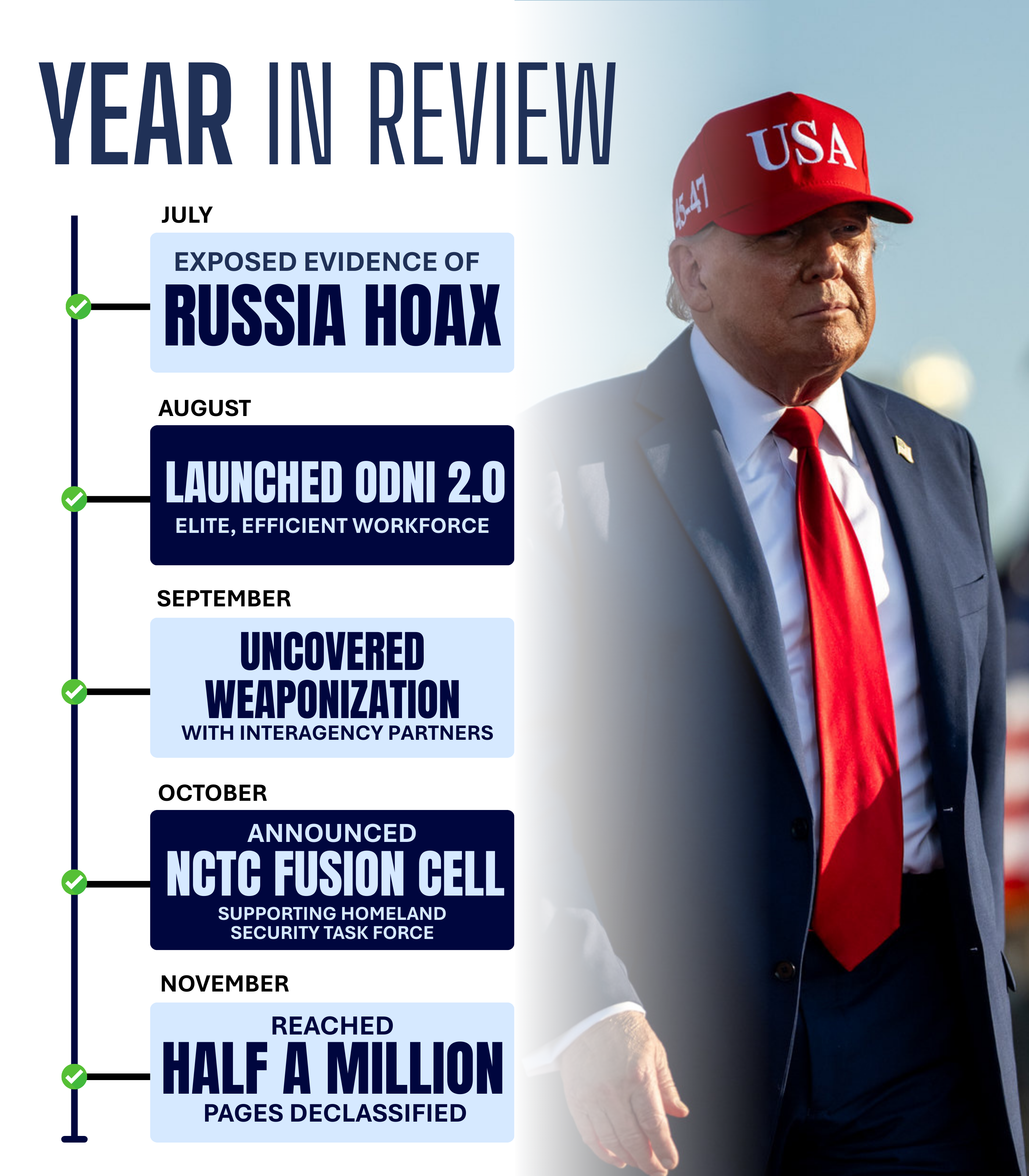 DNI Gabbard unveiled ODNI 2.0, a historic transformation to rebuild an elite and efficient workforce, end the weaponization of intelligence, and refocus on the core mission of intelligence integration and oversight.
